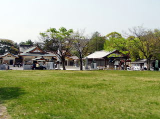 広島護国神社を遠めから撮影。 この左の方に通信室があり、ここから原爆の一報が発せられた模様。 |