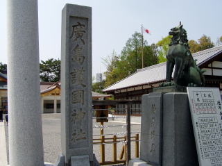 広島護国神社の石碑を撮影。 この左の方に100万円以上寄付した人・団体の名前が書いてありました。 |
