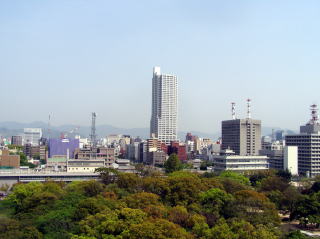 広島城の天守閣から撮影。 中央の建物が広島で一番高いらしい。 |