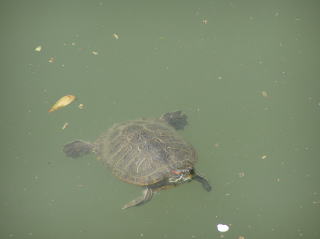 同じ場所で堀の中にいた亀を撮影。 帰りにはいなくなっていて残念。 |