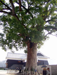 熊本城 飯田丸五階櫓で撮影。 ものすごくでかい木! |