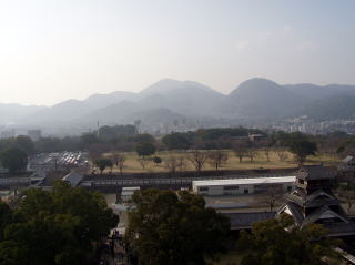 熊本城 天守閣内から撮影。 頬当御門方面を撮影。 |
