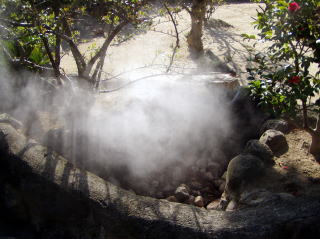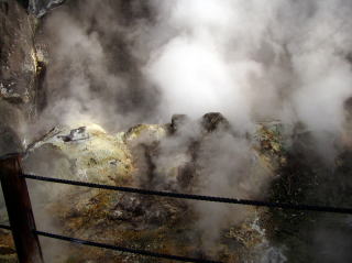 同じく別府 地獄めぐり 山地獄で撮影。 道端からも蒸気?がモクモク〜。 |