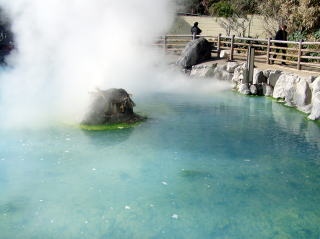別府 地獄めぐり 白池地獄で撮影。 残量0に近い電池でなんとか1枚だけ撮れた。 |