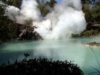 別府 地獄めぐり 龍巻地獄で撮影。 ここから熱湯と噴気が噴出します。 |
